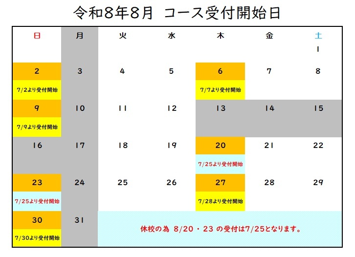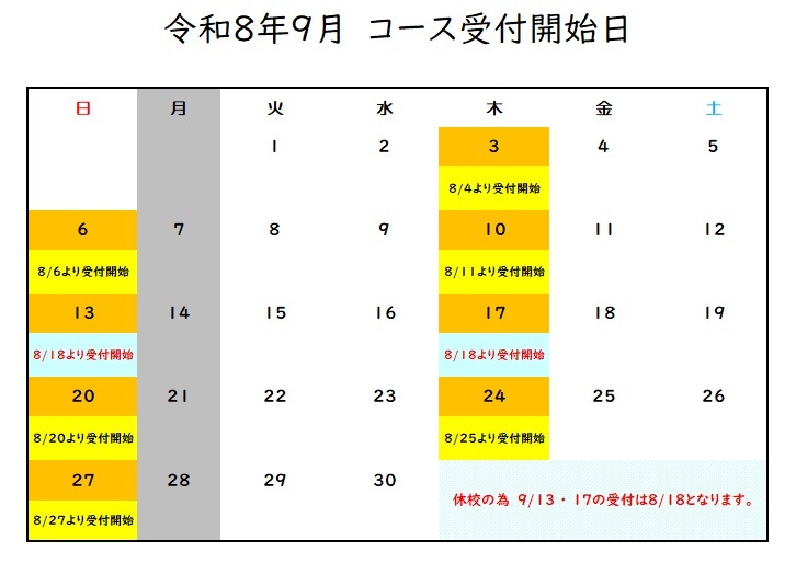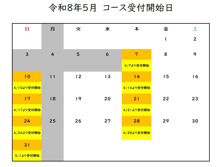 9時を過ぎましたら、定員以上のお名前があるコースは抽選となります