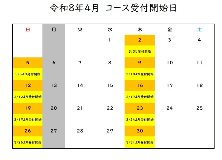 ご希望のスタート日の1か月前より受付を開始します。