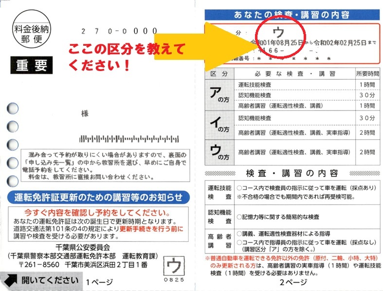 ハガキ ↓ を ご確認の上お電話ください!(区分は皆さんそれぞれ違います)